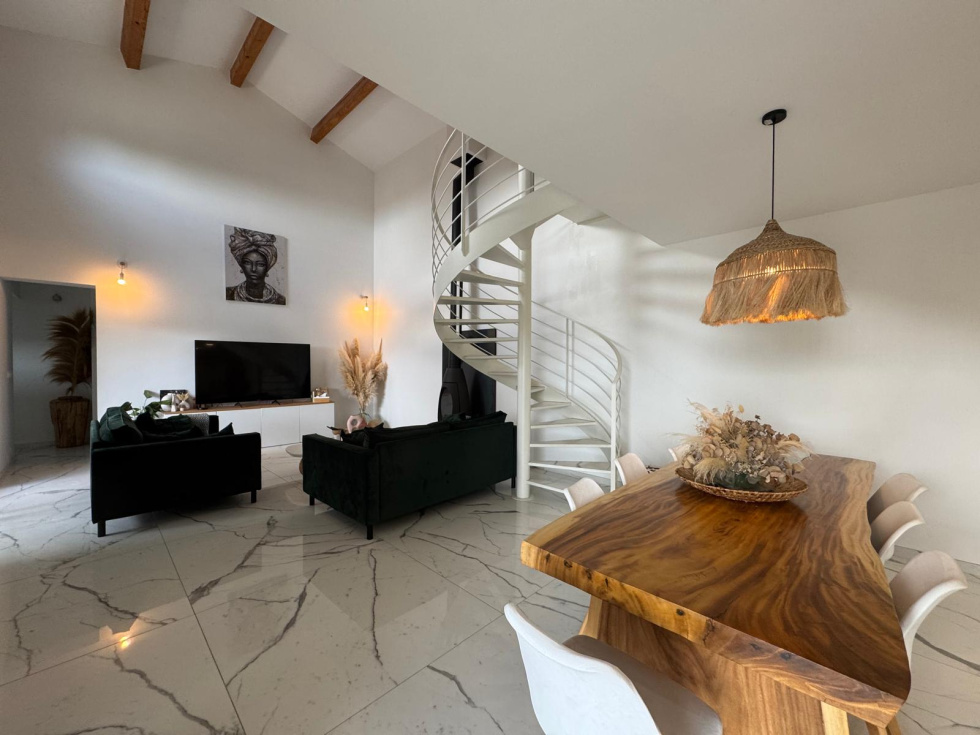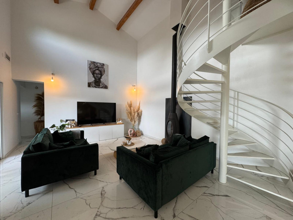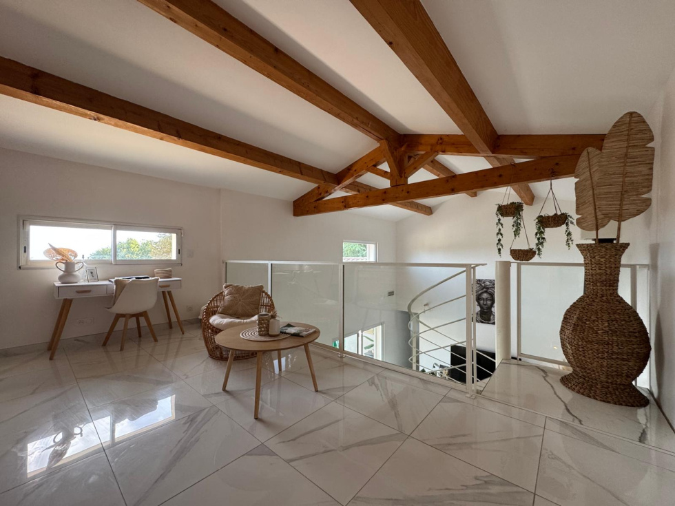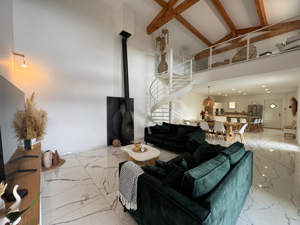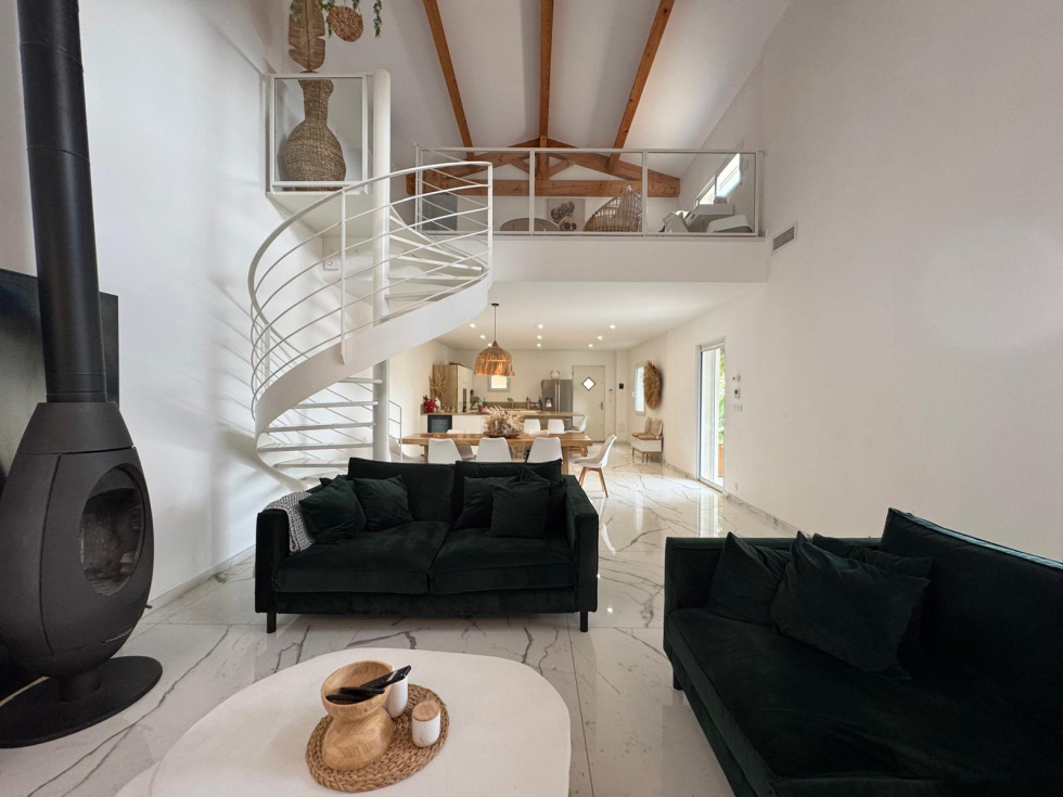 L'agence Portal & Pio vous propose à la vente: A seulement quelques minutes de Nîmes, au cœur du charmant village de Cabrières, cette maison moderne de plus de 180 m², construite en 2022, offrant confort, luminosité et prestations haut de gamme. En rez-de-chaussée : une pièce de vie XXL avec 6 m de hauteur sous plafond, baignée de lumière grâce à ses puits de lumière et ses baies vitrées, une cuisine américaine équipée, une suite parentale avec dressing et salle d’eau (double douche et double vasque), une deuxième chambre, une buanderie et un WC indépendant. À l’étage : un grand bureau, deux chambres supplémentaires et une salle de bain avec WC. Prestations : Climatisation gainable AirZone. Poêle à bois. Ballon thermodynamique. Adoucisseur d’eau. Menuiseries aluminium double vitrage. Finitions et décoration réalisées avec goût. A l'extérieur : Un véritable havre de paix avec une terrasse ouverte donnant sur une piscine à débordement de 11 x 4,5 m, un garage de 40 m², un carport de 25 m², ainsi qu’un terrain de pétanque pour vos moments conviviaux. Cette maison clé en main, moderne et élégante, offre un confort de vie exceptionnel dans un environnement calme et recherché. Une opportunité rare sur le secteur, à visiter sans tarder