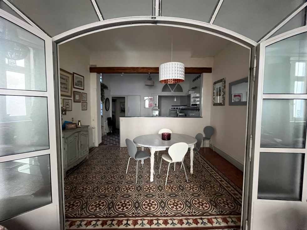 NIMES ECUSSON Une très belle adresse pour cet appartement de 118 m² situé au premier étage dans un immeuble historique de la ville. Composé de 2 belles chambres, un boudoir, deux dressings, une salle de bain et une salle d'eau, cet appartement propose également côté jour un double séjour aux vastes volumes et hauteurs sous plafond. Les amateurs d'authenticité seront sous le charme de ce très bel appartement, au premier étage d'un immeuble classé du XVIIème siècle. Vous bénéficierez également d'une terrasse de 5 m² et d'une cave. Coup de coeur assuré