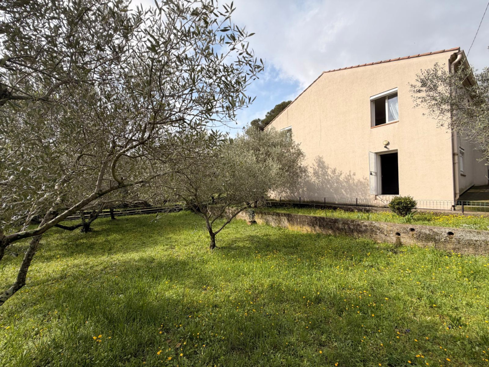 Construite dans les années 70, cette maison solide et parfaitement entretenue développe 155 m² de surface totale, dont 100 m² habitables, sur une magnifique parcelle arborée de 1600 m² avec oliviers et vue dégagée. Située dans un quartier calme, elle se trouve à seulement 10 minutes du centre-ville et à proximité des commodités. La partie habitable se compose d’une pièce de vie chaleureuse avec cheminée, d’une cuisine indépendante, de trois chambres, ainsi que d’une salle d’eau refaite à neuf. En sous-sol, la maison dispose d’un espace de 55 m² comprenant un garage ainsi que trois pièces supplémentaires, idéales pour du stockage, un atelier ou l’aménagement d’espaces complémentaires selon vos besoins. À l’extérieur, le terrain de 1600 m², joliment arboré d’oliviers, offre un cadre de vie agréable avec une terrasse, une vue dégagée et un fort potentiel d’aménagement, notamment avec un terrain piscinable. Côté prestations, la maison bénéficie d’une climatisation réversible avec pompe à chaleur, de menuiseries PVC double vitrage, de volets roulants électriques, de combles isolés, d’une dalle béton, ainsi que d’une façade refaite il y a moins de 10 ans. La construction, de qualité, dispose également d’une double génoise. La fosse septique a été entièrement refaite et mise aux normes il y a deux ans. Une maison saine et très bien entretenue, offrant un cadre de vie paisible et un beau potentiel, idéale pour une famille à la recherche d’espace et de tranquillité à proximité de la ville.